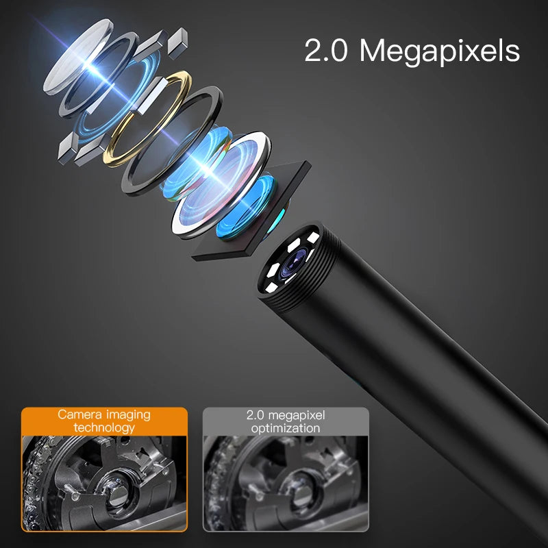 dual lens endoscope inspection camera have 2 pcs 8mm 2.0MP lens that can switch between the two lenses. The most incredible thing is that front lens can provide a 70° angle of view, and all the borescope camera can shoot 1080P HD smooth videos.
