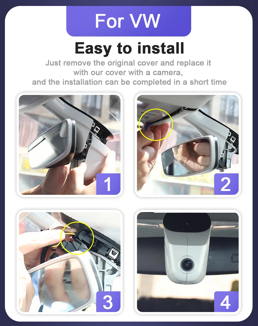 Just remove the original back cover and replace it with our dashcam and it takes a short time to install.