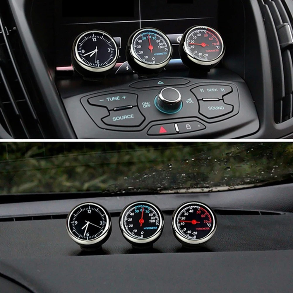 Car Interior Mini Quartz Watch Clock Hygrometer Thermometer Dashboard Ornament