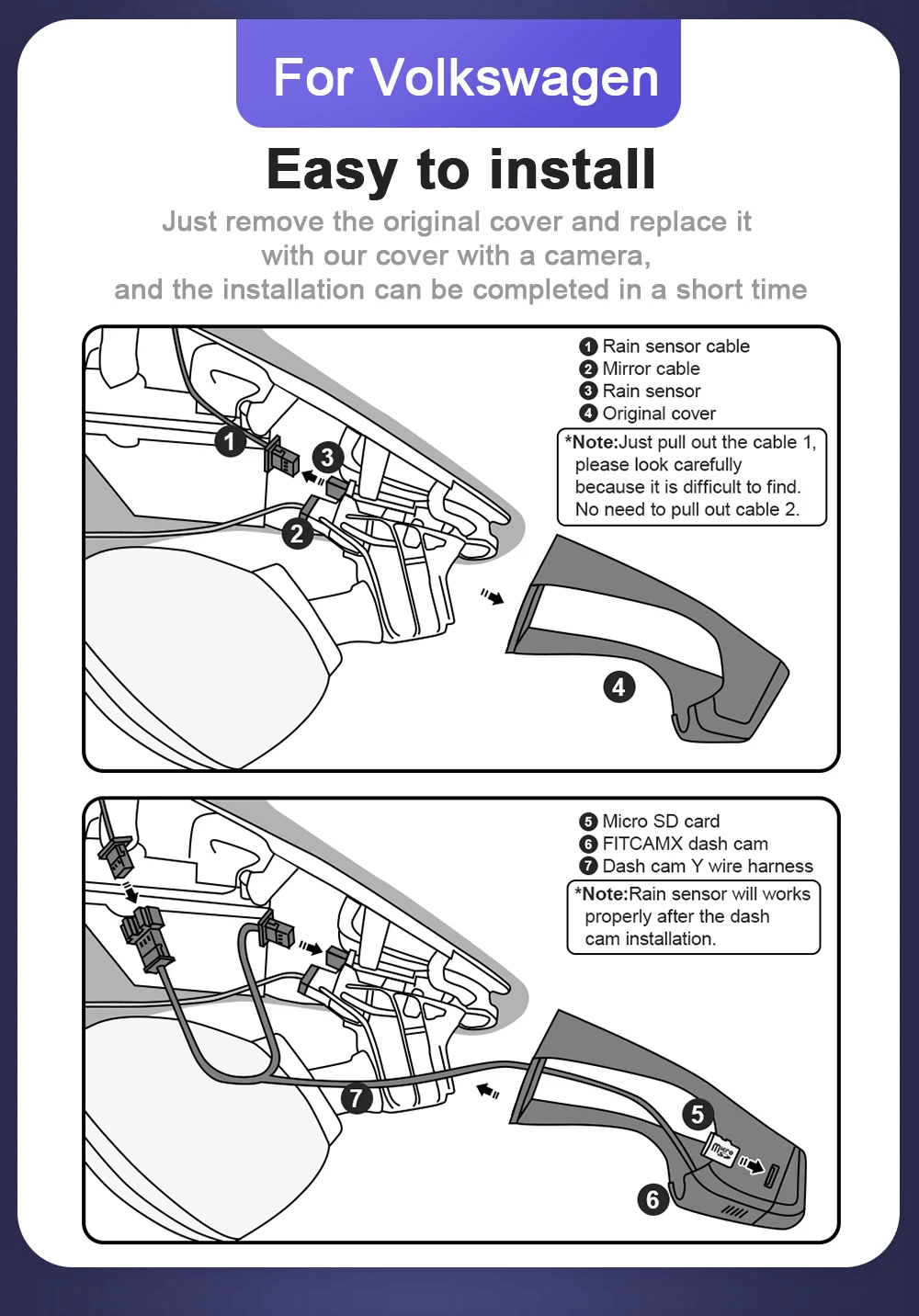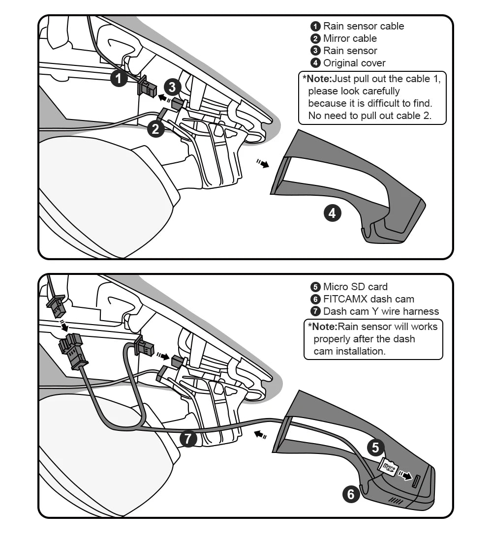 No damage to install, various ways to take power. It takes power from rain fall sensor. The plug and play cable is sent by default, if you need to replace the fuse box cable or OBD cable, please contact us before sending.