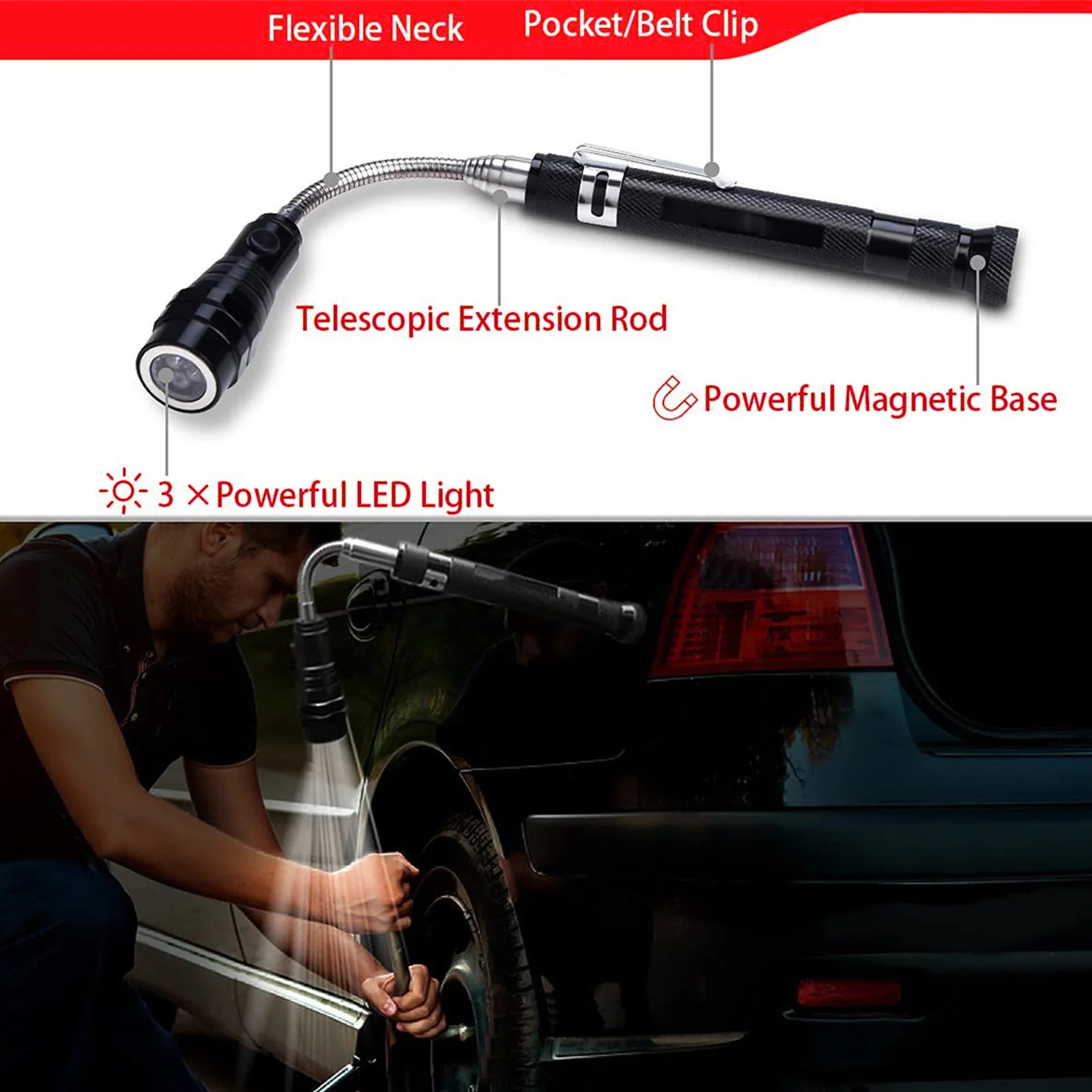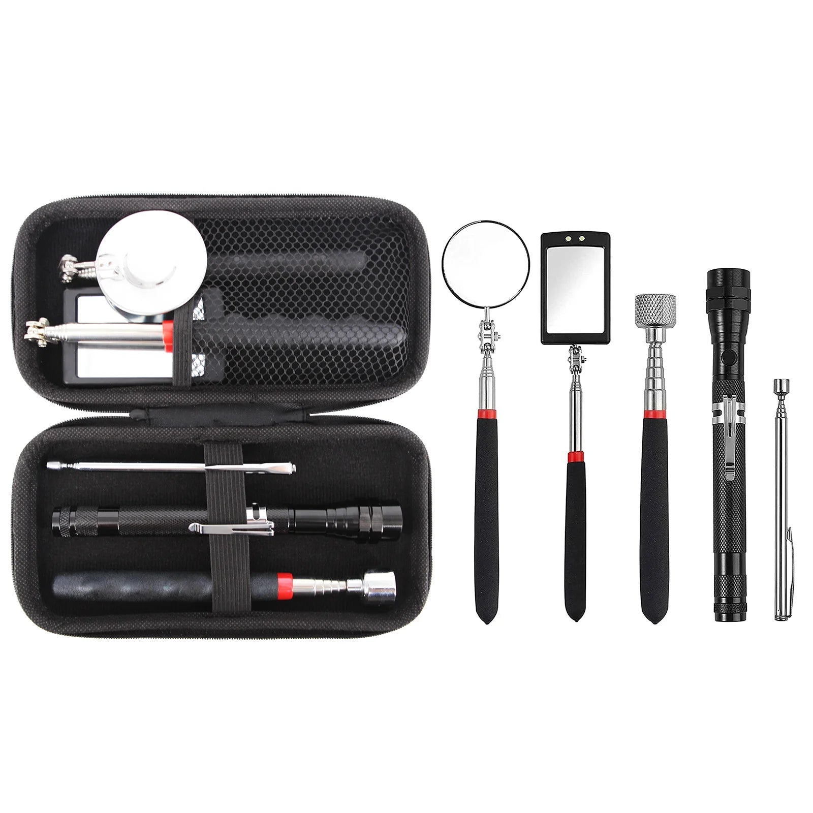 Telescopic Magnetic Pickup Tool Set Telescoping Pick Up Sticks 360° Swivel Square & Round Inspection Mirror, Magnetic Torch Flashlight Car Accessories